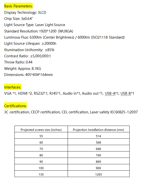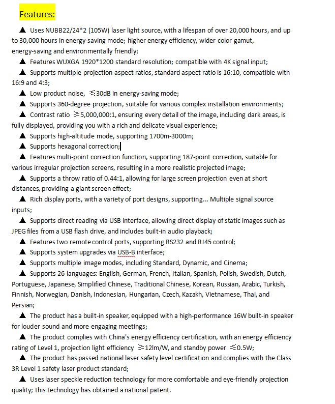 ▲Features WUXGA 1920*1200 standard resolution; compatible with 4K signal input;
